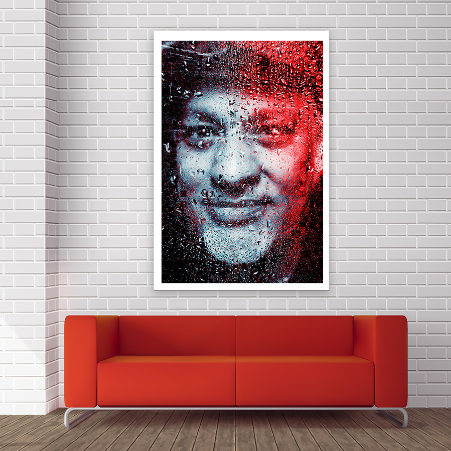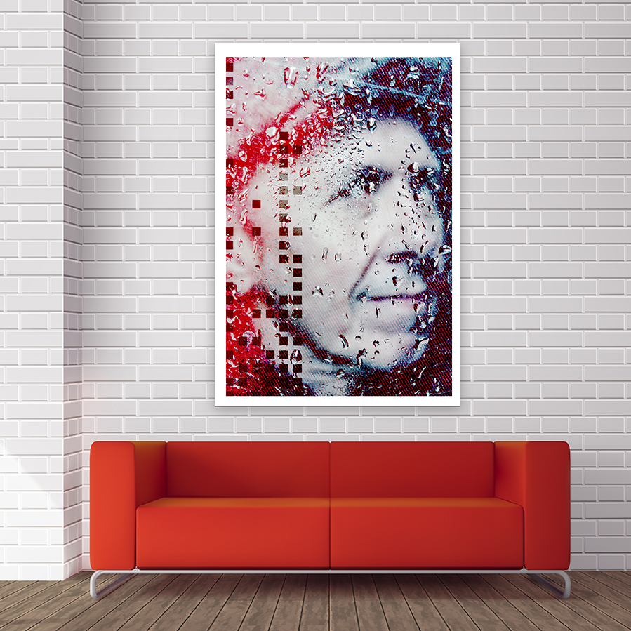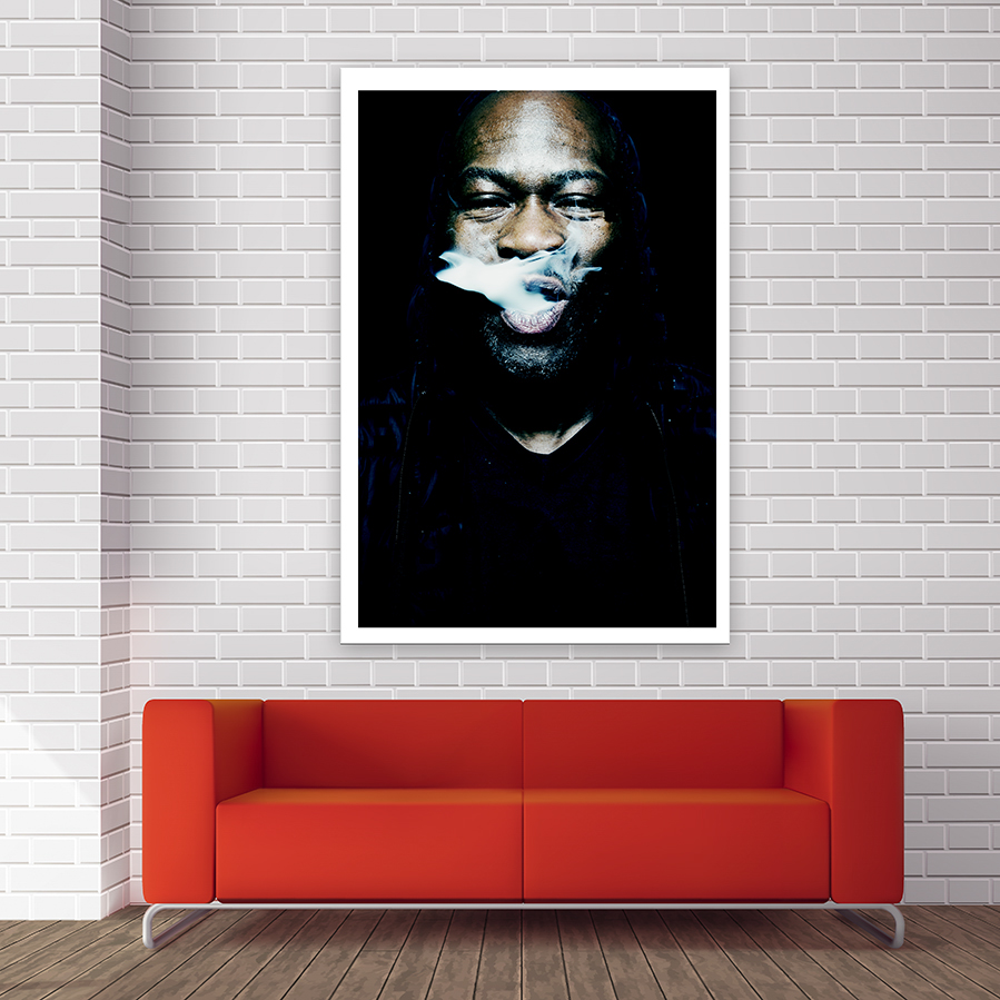 - La question du tirage, envisagée ici en format géant au dessus d’un beau canapé rouge.